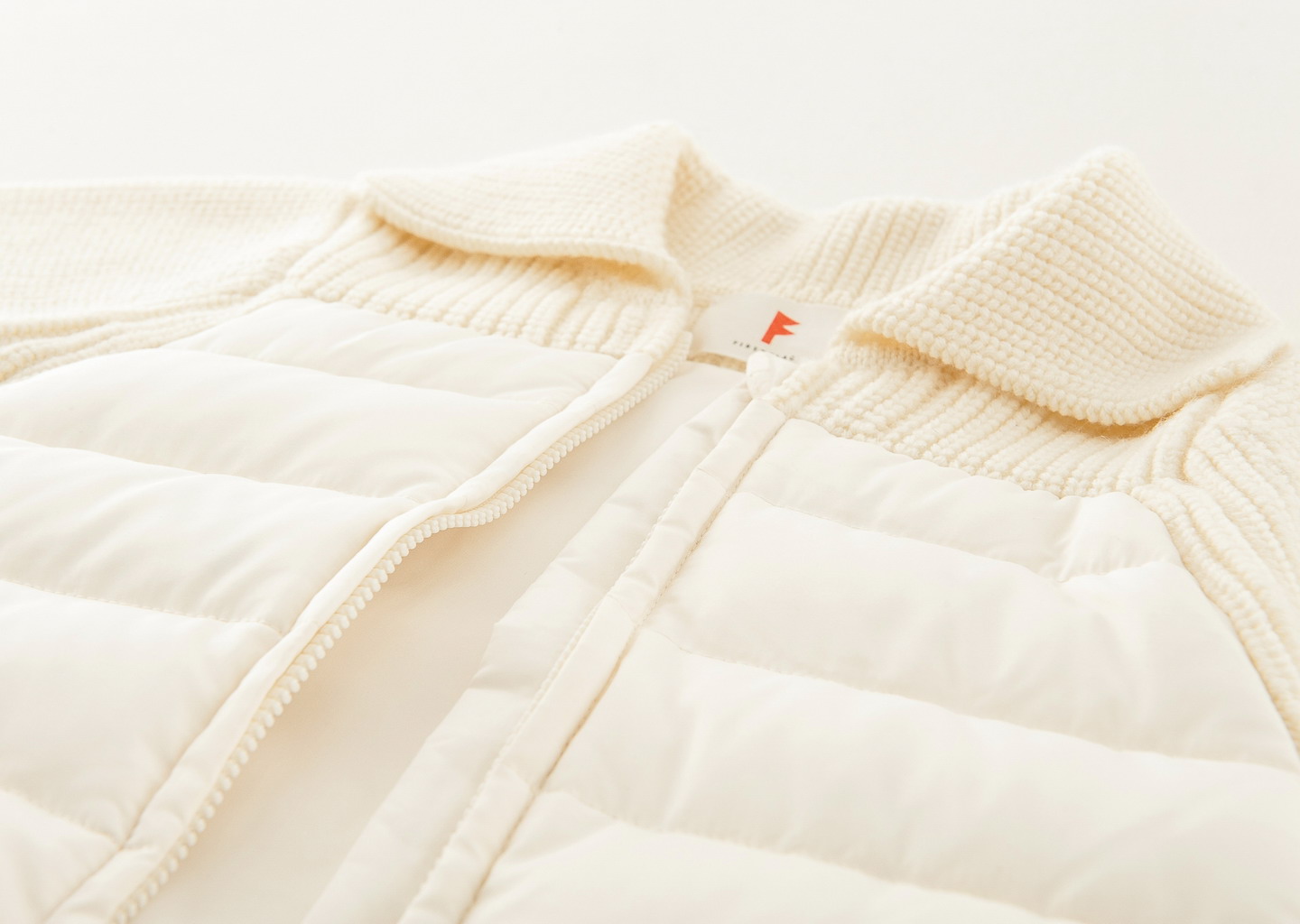 面料一:羊毛100% 面料二:聚酯纤维100% 里料:聚酯纤维100% 内胆:聚酯纤维100% 填充物:白鹅绒100% (含绒量95%) 填充量: 6-12M /31g 12-18M/ 35g 18-24M/39g 3T/43g