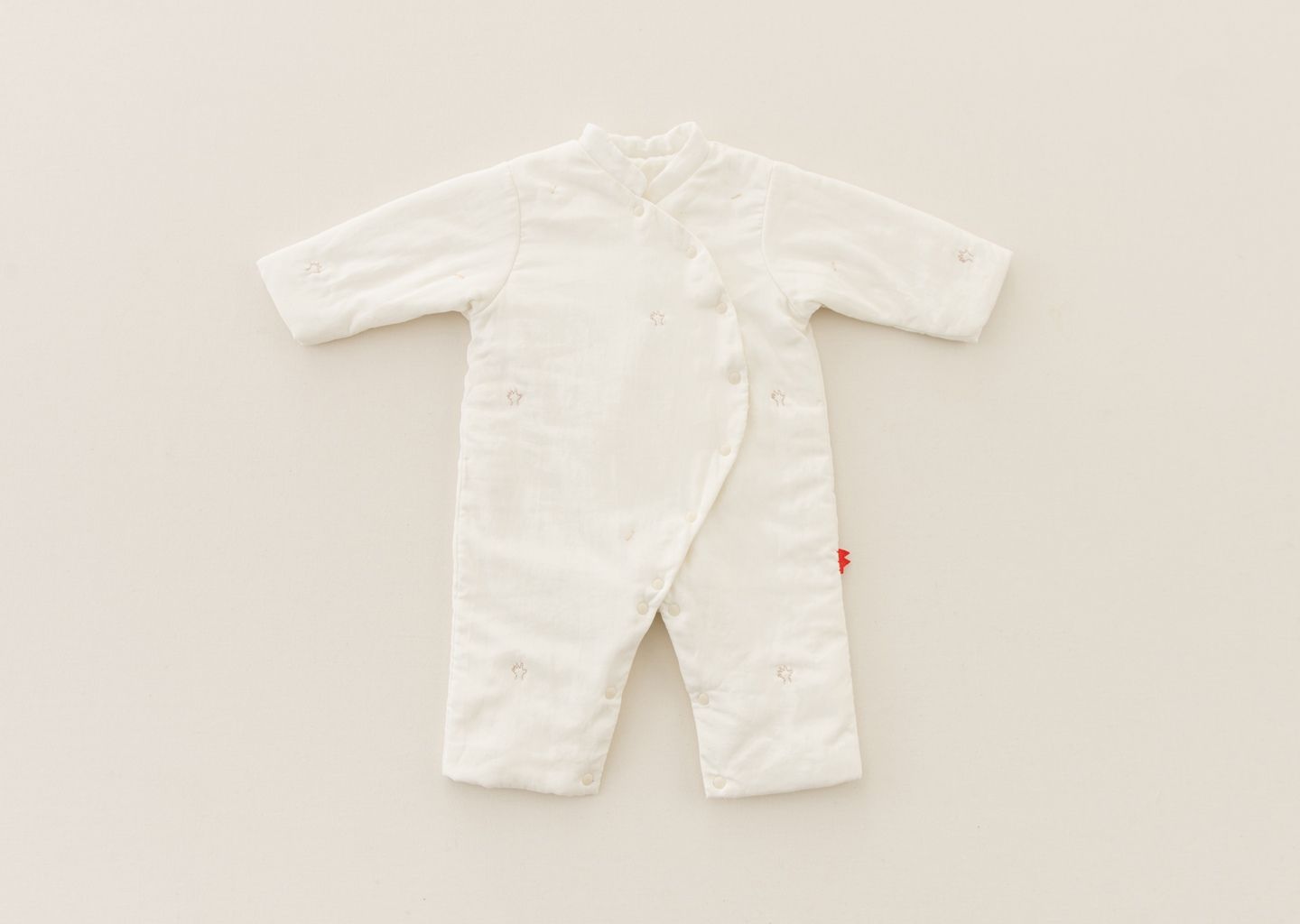 面料柔软舒适,不起静电,手绣婴儿手和花瓣图案作为装饰,造型可爱有趣。