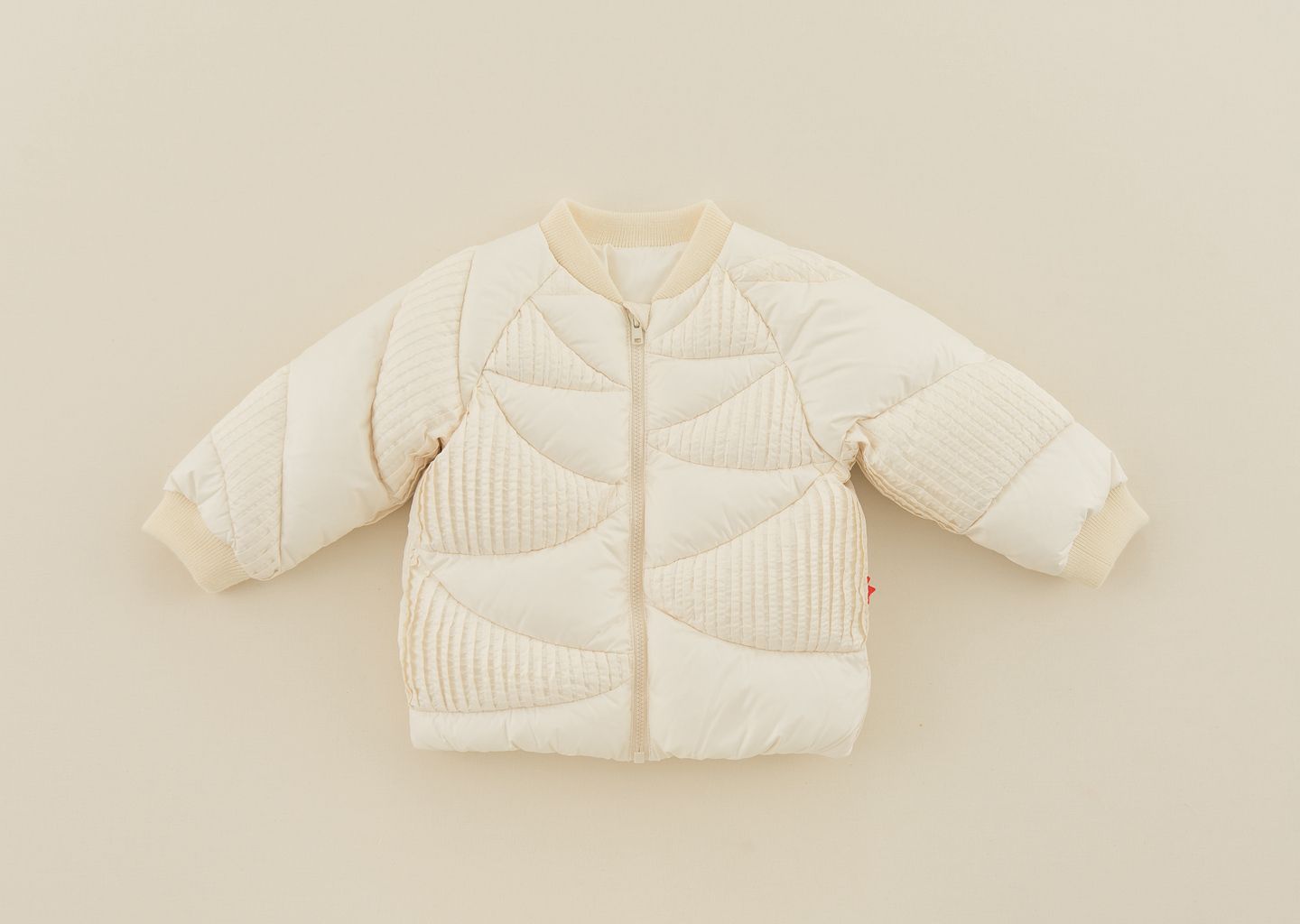 选用便于清洗、不易静电的聚酯纤维面料,填充顶级大朵的白鹅绒,增加充绒量,更加的保暖,适合寒冬穿着。独特的不对称分割拼接设计,相同材质的面料上通过做塔克褶改变面料的肌理,使面料产生强烈的对比,视觉上增加了层次感。