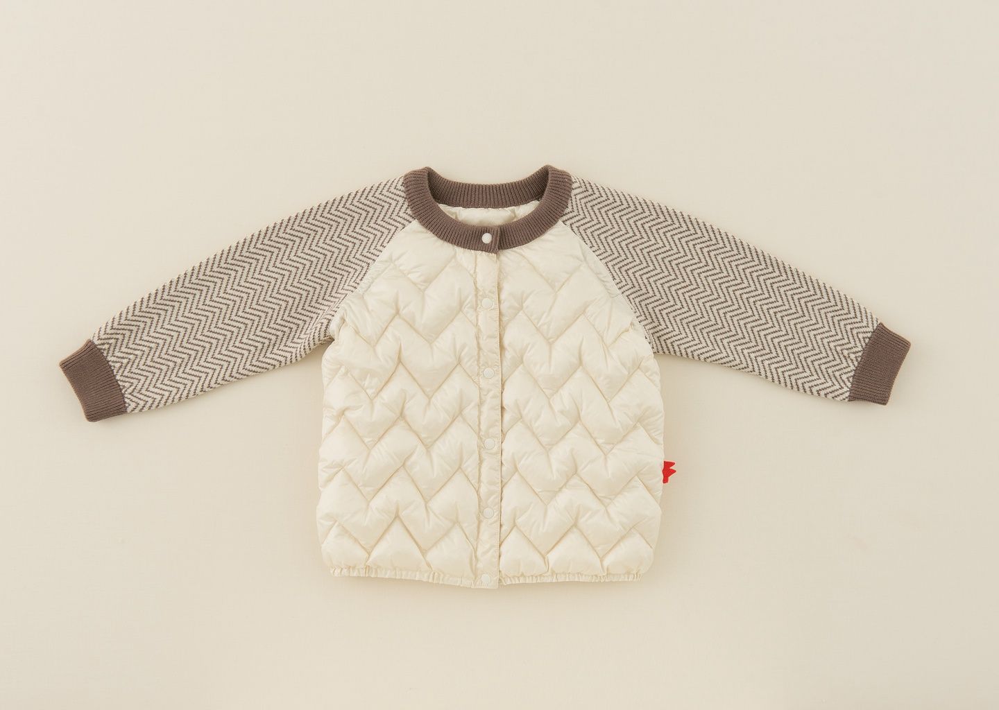 针织与羽绒相拼,针织的弹性可以弥补羽绒的灵活性,活动起来不被束缚。羽绒的保暖可以弥补针织容易透风的缺点。经典的波纹设计,简单大气。