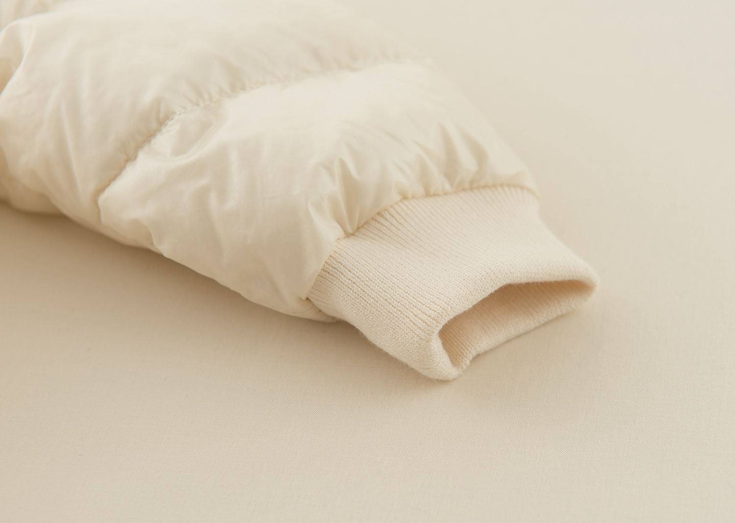 面料:锦纶100% 里料:锦纶100% 填充物:白鹅绒 (罗纹除外) 含绒量:95% 填充量: 80/48:18.2g 90/52:20.4g 100/56:22.8g 110/56:25g