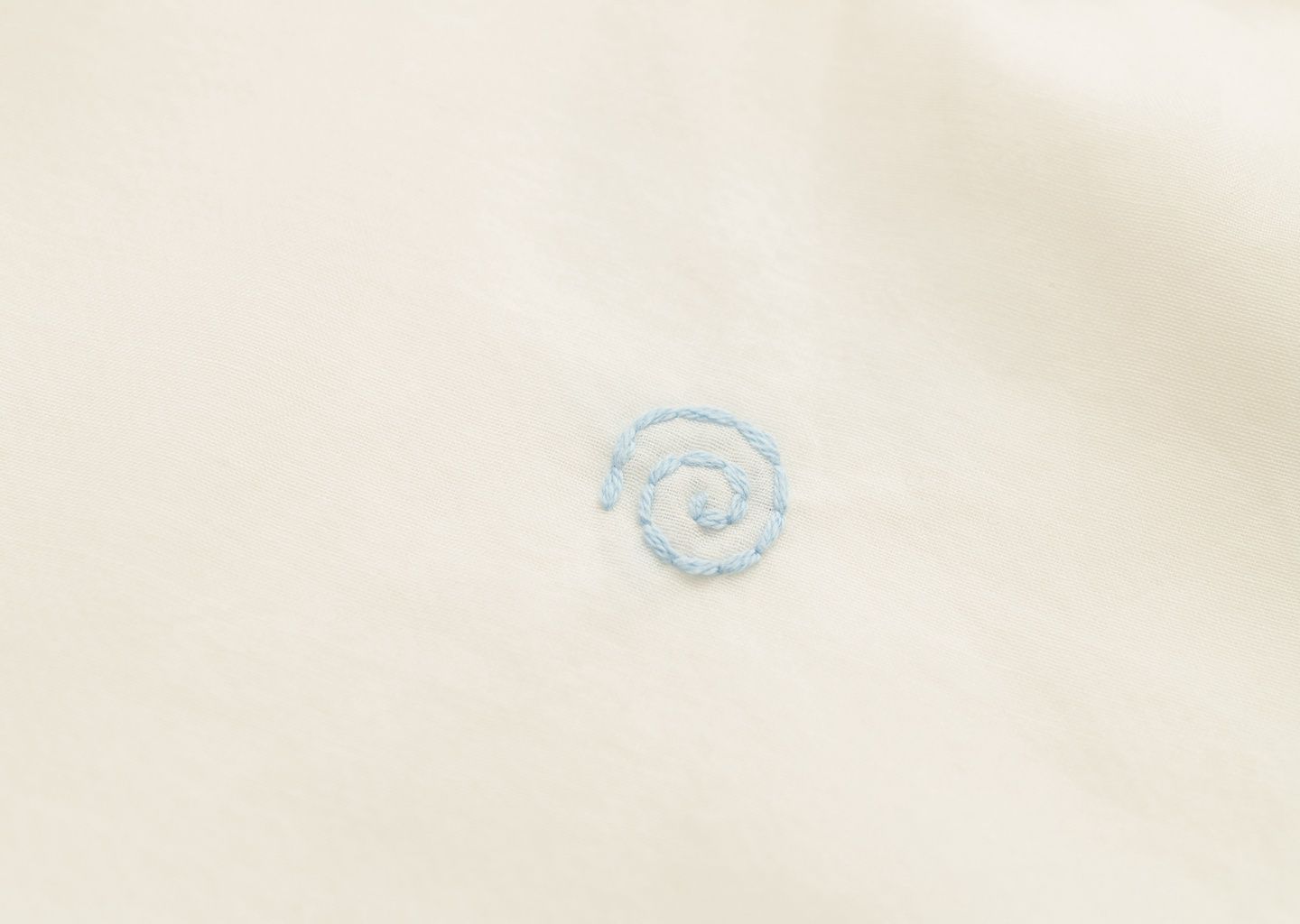 选用丝绵材质的面料,轻盈,舒适,厚度适中,春秋皆可穿着。主要采用了手绣的工艺,手工绣花和贴布结合。