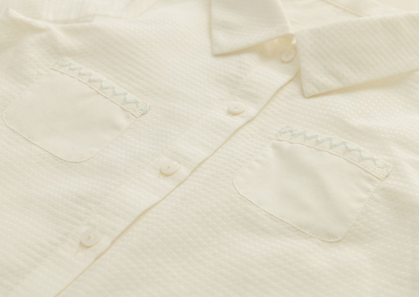 面料:棉73.4% 桑蚕丝26.6% 拼料:棉54% 桑蚕丝46% (装饰除外)