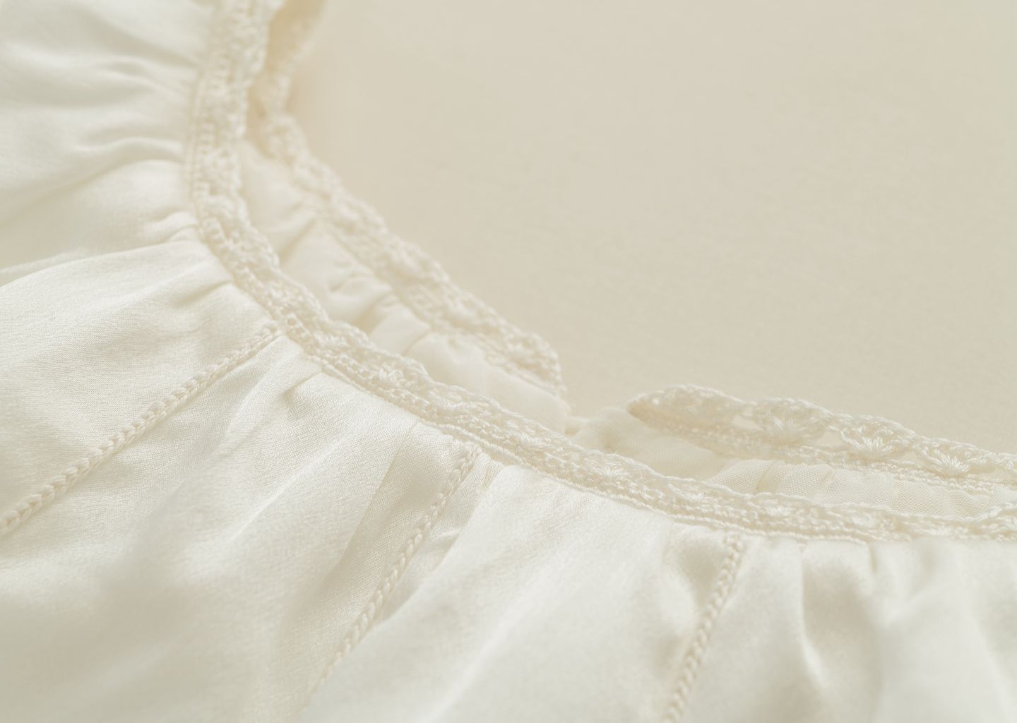 面料:桑蚕丝100% 里料:棉54% 桑蚕丝46% (装饰除外)