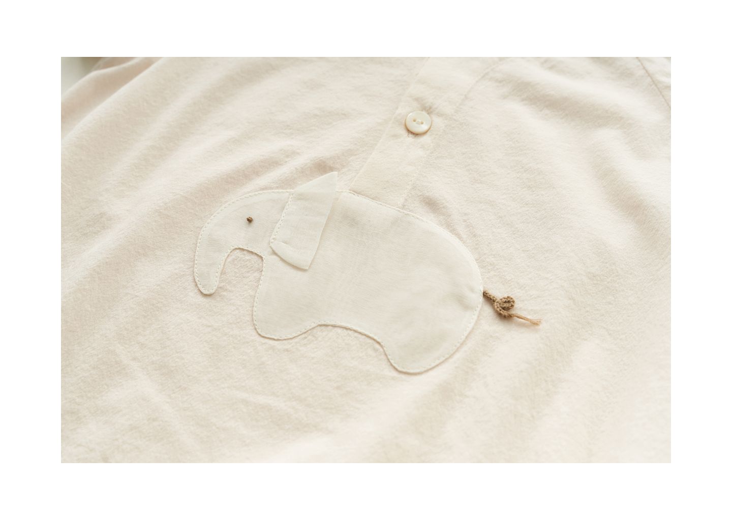 面料上采用柔软亲肤丝光棉材质,运用贴布与手钩结合的手法,展现出惟妙惟肖的动植物的形象,让原本的基础款式更加有设计感,更生动可爱。