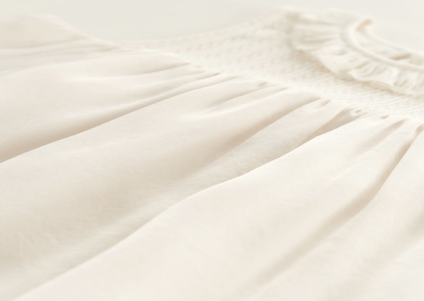 面料:桑蚕丝100%,育克:桑蚕丝100%,里料:棉56.9%,桑蚕丝43.1%