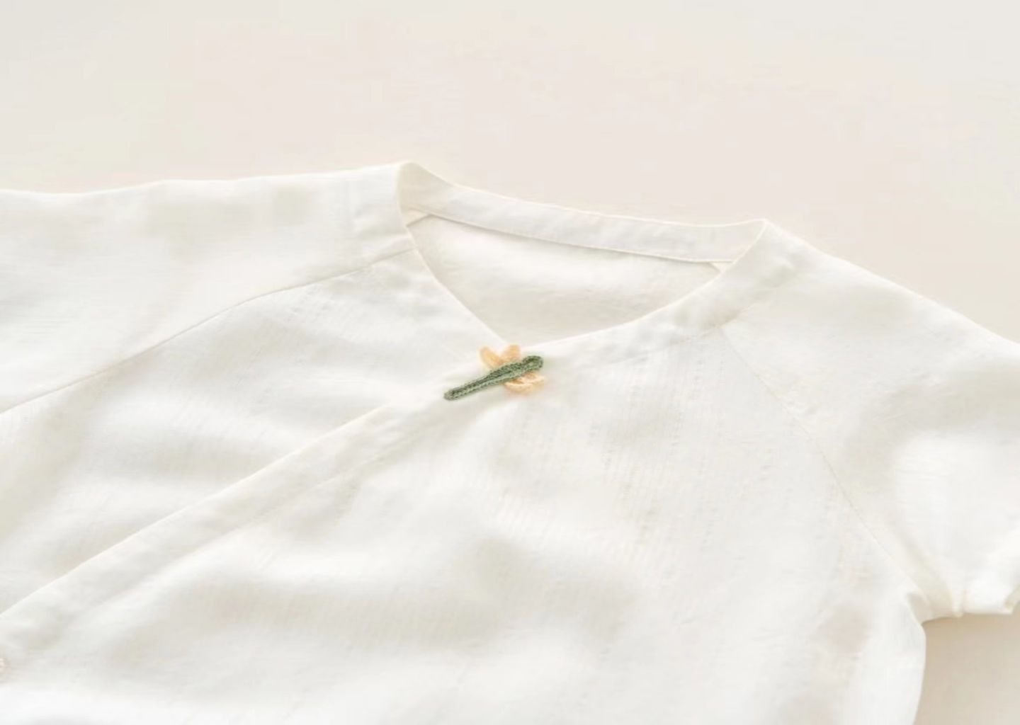 面料:桑蚕丝77.3%,大麻22.7%,手钩领边,桑蚕丝100%