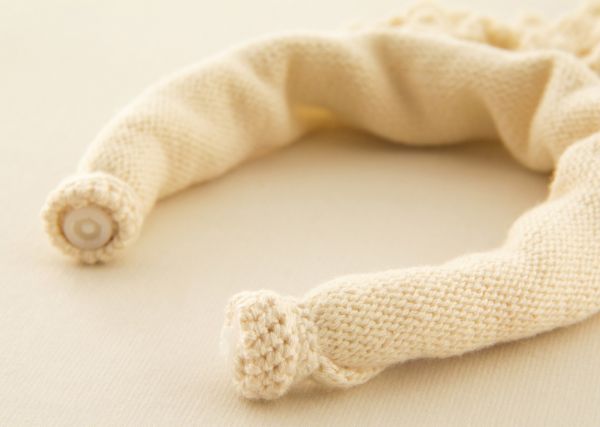 手工钩针装饰与柔软的有机棉结合,装饰并具有功能。