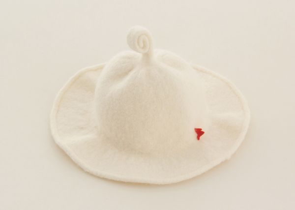 造型淘气的帽子,充满欢快气氛。使用羊毛缩绒工艺,利用高温水洗缩绒,使织物变的厚重、紧密。外出搭配穿戴,是绝佳的选择。